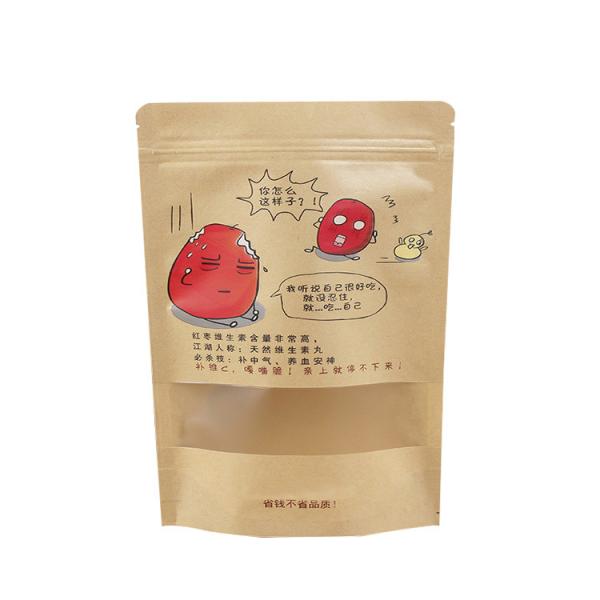 Custom Design Brown Kraft Stand Up Pouches with Window with Zipper for Chinese Dates, Dry Fruits, Snacks Packaging